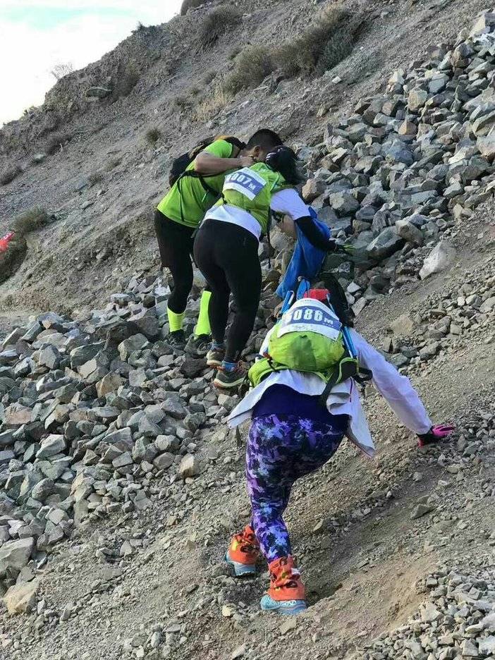 夜幕降临,宝宝,东风,普神,君君四人同行。经过下雨崩,宝宝脚受伤,寸步难行,普神君君左右搀扶着走。估算时间,我脚抽筋能走但跑就别指望了,宝宝也完了,只剩普神和君君,和普神说让普神先走,我们三人在后面慢走。这次反倒我啰嗦了起来,连续三次让普神先走。我内心期望普神完赛,最后普神不耐烦:“别说话,走你的,安全把你们送到下一个补给点再说!”
