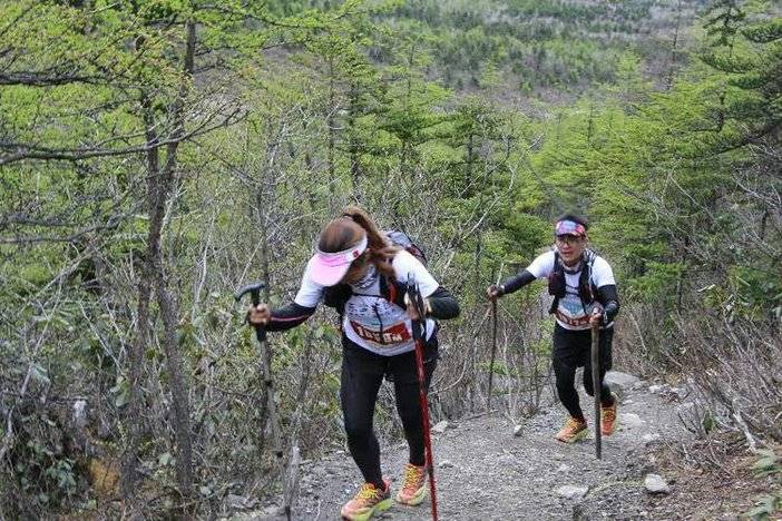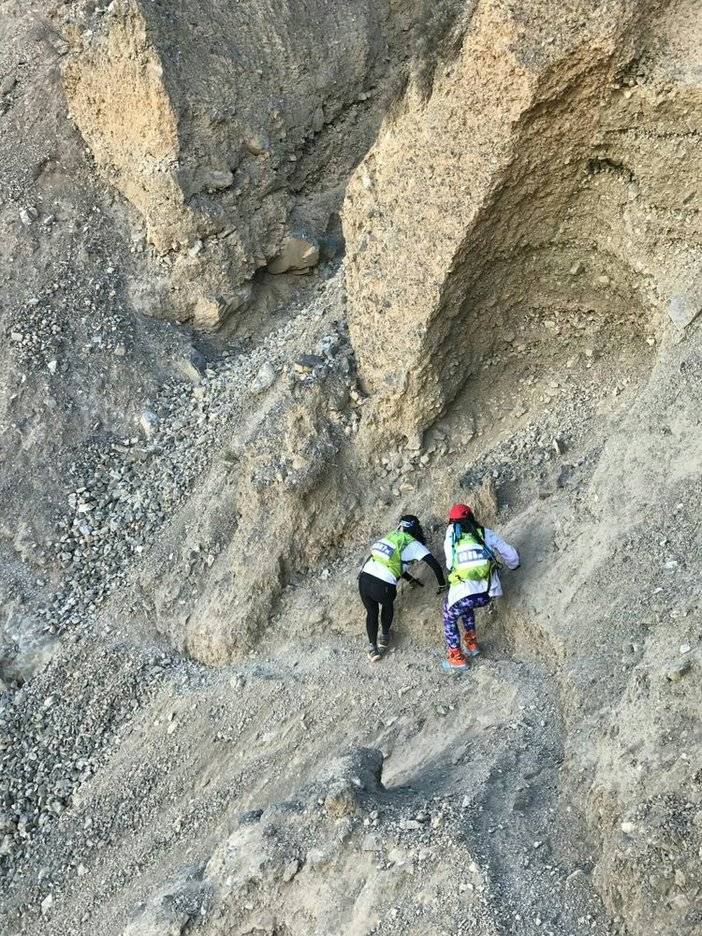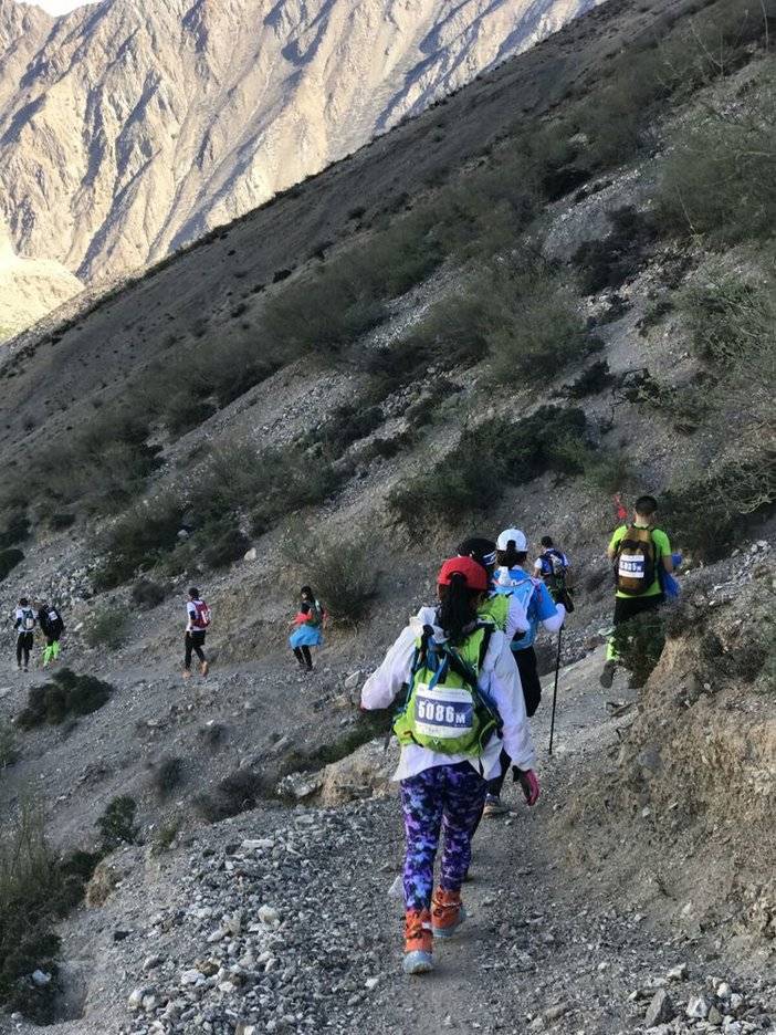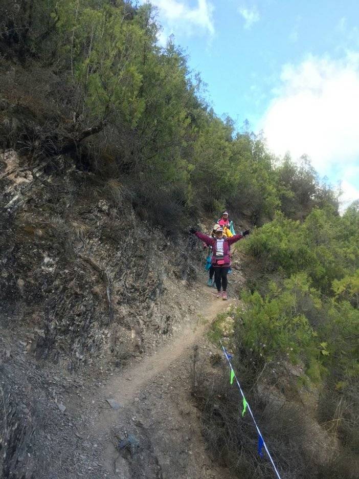 转折发生在第一个打卡点(也是补给点)27km处,卸下包袱,狠狠的喝了两大瓶水,吃了四粒不知道有没有作用的排酸丸和一粒跑友给的盐丸,然后听到一个不幸的消息:三位跑友放弃了比赛。内心明白他们为什么会放弃,24km处大小腿左右腿开始乱翻着作对似儿的抽筋已经告诉我,路段是多么的艰难无比。